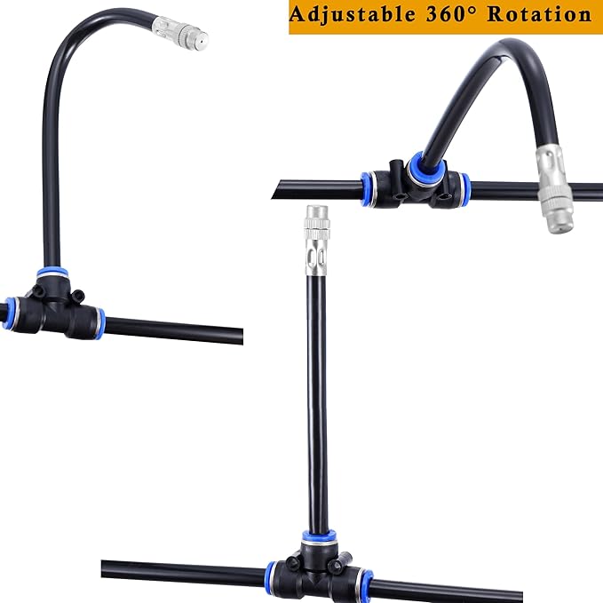 • 【Brass Misting Nozzles Tee with 4inch Built in Hose】: Made of premium brass, Mornajina Brass Misting Nozzles Tee with 4inch built in hose can be bent and fixed at 360 degrees, very convenient to adjust the place to be sprayed and specify the direction. And these misting nozzle tee thread sprayer with replacement heads equipped with leak proof self sealing o ring, no tape or sealant is required.