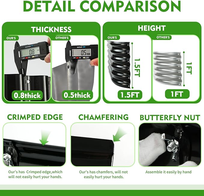 • Materials and Construction: The raised garden bed kit is constructed with sturdy metal 0.8mm thick, providing a reliable framework for your garden. The oval-shaped design adds a unique aesthetic,and the 17" height provides ample depth for plants