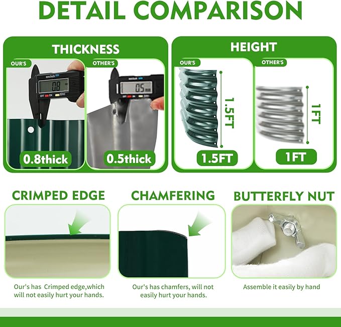 • Materials and Construction: The raised garden bed kit is constructed with sturdy metal 0.8mm thick, providing a reliable framework for your garden. The oval-shaped design adds a unique aesthetic,and the 17" height provides ample depth for plants