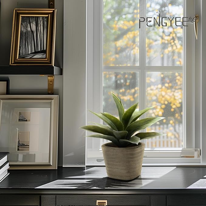 • DURABLE MATERIAL : PENGYEE 2 pack small artificial plants Indoor for room decor are made of premium and eco-friendly plastic that is non-toxic and harmless. To make our artificial agave plant for home decor look more realistic, we adopt a unique design to imitate the frosty gray leaves, which is not dust. Please don't worry about it