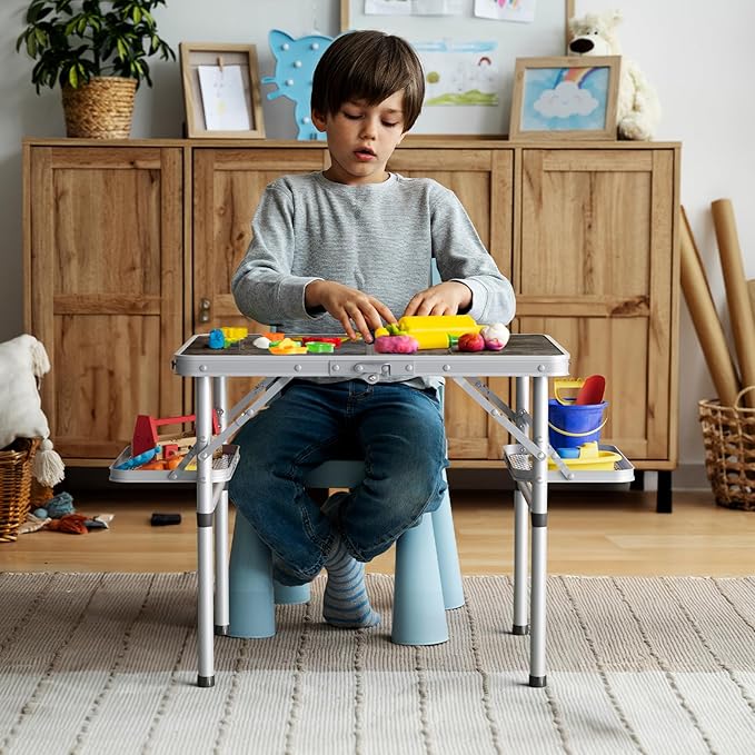 • Lightweight & Strong Load-bearing. Our folding camping table is made of 90% aluminum & 10% density board, ensuring that it is light and strong at the same time. The picnic table is 6lbs heavy and supports up to 70 lbs, and each wing supports up to 20 lbs.