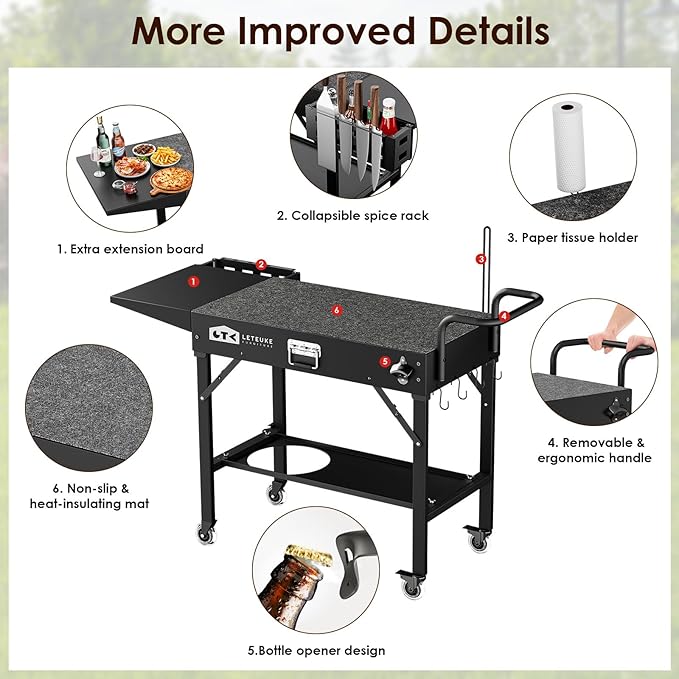 • Easy to Install: Grill carts has straightforward assembly instructions and require minimal maintenance, so you can has more time enjoying delicious BBQ. If you have any questions about the product, please feel free to give touch with us. Leteuke wishes you a happy life.