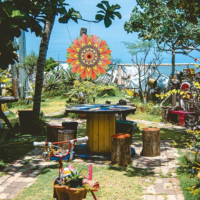 • 【Kinetic Art 3D Visual Sense】The colorful sunflower wind spinner can be multi-layer flip, the unique flow of light surface design, in the breeze under the 360 deg rotation, especially in the sunshine, this bright and charming landscape, is so natural elegance and brilliant colors