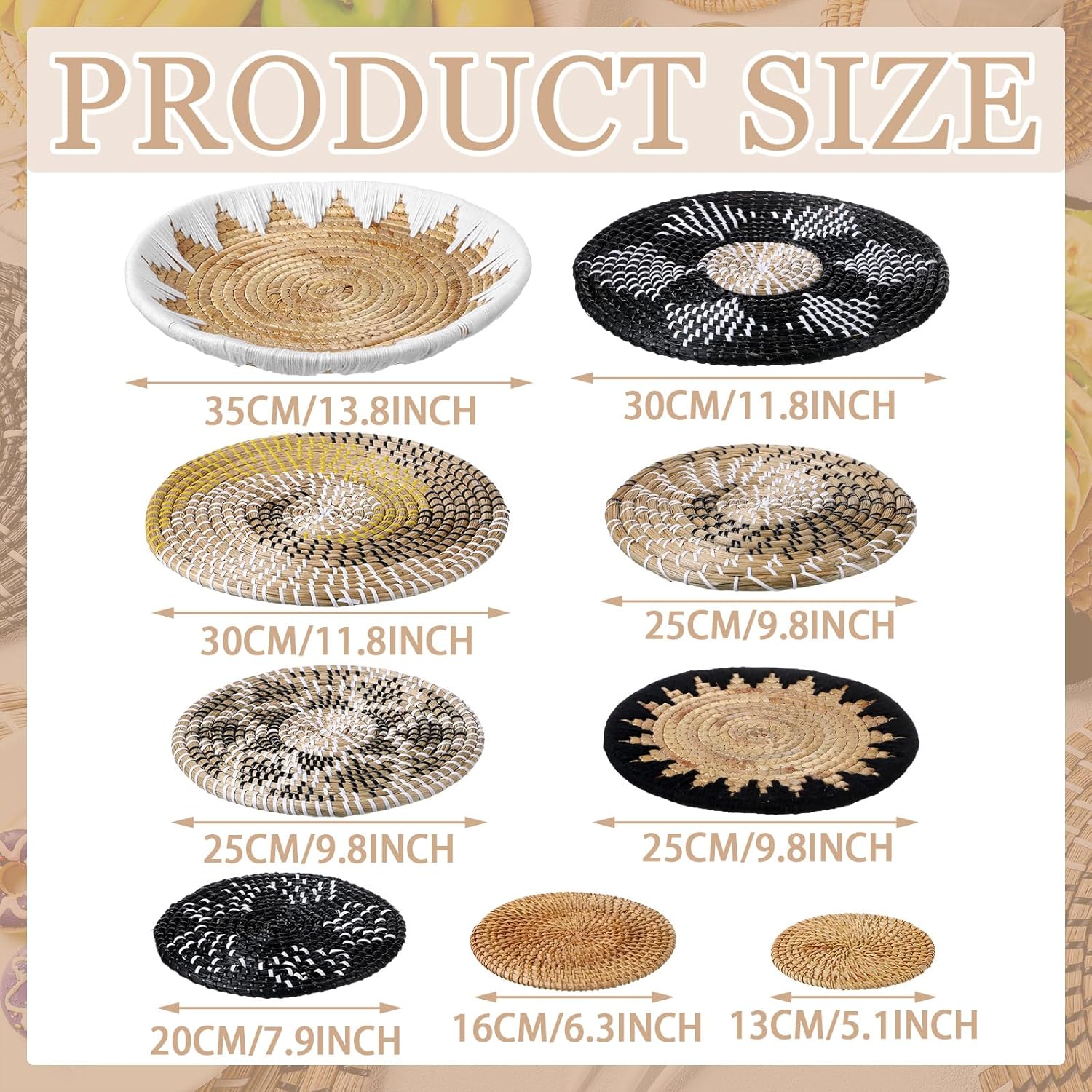 Xuhal 11 Pcs Boho Hanging Wall Basket Decor Handmade Woven Basket Wall Decorative Boho Wicker Baskets Placemats Round Farmhouse Bulrush Art for Rustic Home Decorations Christmas Gift(Stylish)
