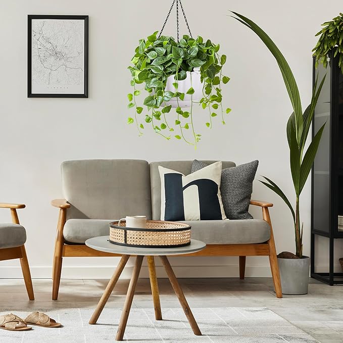 • Versatile Use: Enhance your space with versatility using indoor planter. Featuring removable detachable hanging chains, white hanging pots for plants indoor is perfect for outdoor areas like patios, gardens, and balconies, or indoor spaces such as kitchens, living rooms, dining rooms, bedrooms, and windowsills. outdoor planter for patio’s flat bottom also allows pots for outdoor plants to sit on desktops without chains.
