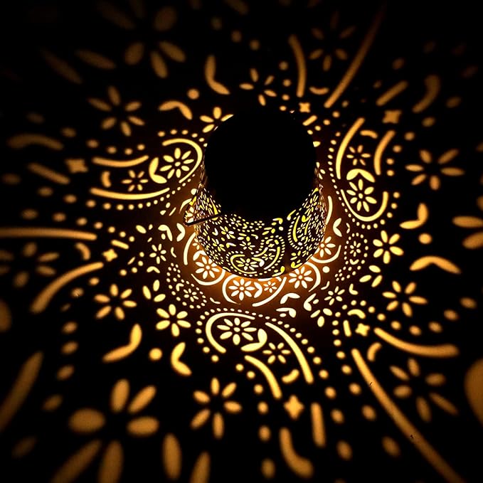 • Decorative &Wide Application: 4 packs small patio hanging lanterns have a colorful outlook--red, blue, green, and yellow. There is a warm light with beautiful flower patterns and a classic hollow-out design, these table lanterns will create the romantic ambiance you want.