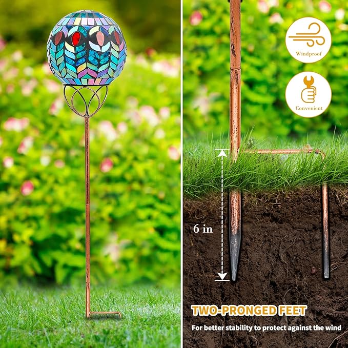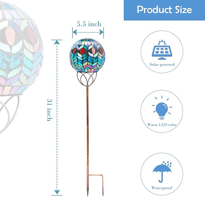 • Unique design: Solar mosaic stake adds fun to your garden, patio or pathway. Artistry mosaic ball can reflect light via crackle-like glass from every angle under the sun