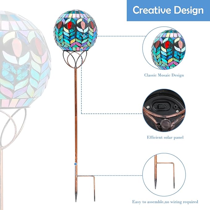• Perfect choice: Whether there is sunshine or not, this fantastic Mosaic Solar Lights will add energy and color to any space. Outdoor garden stakes will make a wonderful addition to your collection of outdoor accessories, or a perfect gift for someone who loves to relax outside