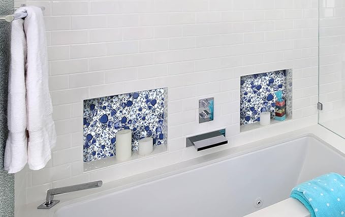 • Mesh back Tile: The blue & white pebble mosaics are mesh mounted. It is easy for cutting the mesh for any DIY project.
