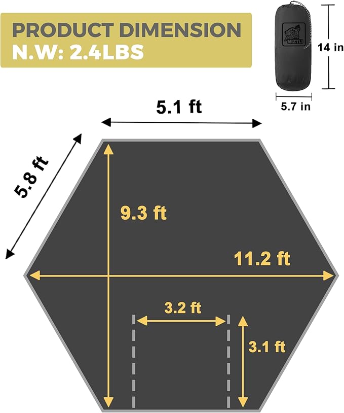 • Lightweight and Portable for Every Adventure - Our hammocks weigh only 2.7 lbs (106" x 55”) and 3.2 lbs (118” x 71”), making them ideal for hikers, backpackers, and campers. They pack down to a compact size of 14.8” x 5.3” x 5” and 17” x 5.3” x 5.5” respectively, allowing for effortless transportation