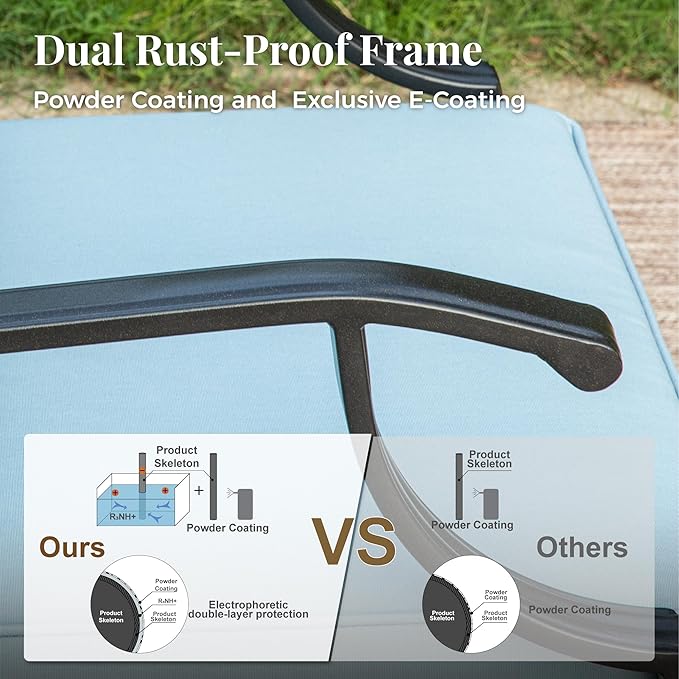 • 【RELIABLE ALL-WEATHER METAL CONSTRUCTION】Built from durable metal with E-COATING and POWDER-COATING finish, ensuring resistance to all weather conditions, rust-proof qualities, and easy maintenance. The sturdy wrought iron frame can withstand various weather conditions, with the single chairs supporting up to 350 lbs and the 3-seater sofa accommodating up to 900 lbs, promising long-lasting reliability and durability.