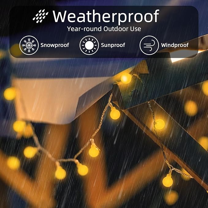 • Safety & Waterproof Design: The globe string lights have ETL certification and a 29v low voltage design with advanced safety features, giving families with children and pets peace of mind. The globe around the lights is shatterproof, increasing the durability of the string lights. The outdoor globe string lights are IP44 waterproof, perfect for home decoration without getting damaged, even in heavy rain and snowy conditions. Just make sure to protect the plug from water. These globe string lights are widely used for Christmas, holiday, wedding, kid's room, girl's bedroom, patio, and camping party decorations.