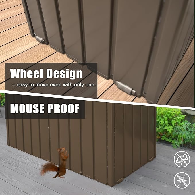Domi Outdoor Deck Box 100 Gallon, Waterproof Lockable Steel Outdoor Storage Container for Outside Cushions, Garden Tools and Pools Equipment (Dark Brown)