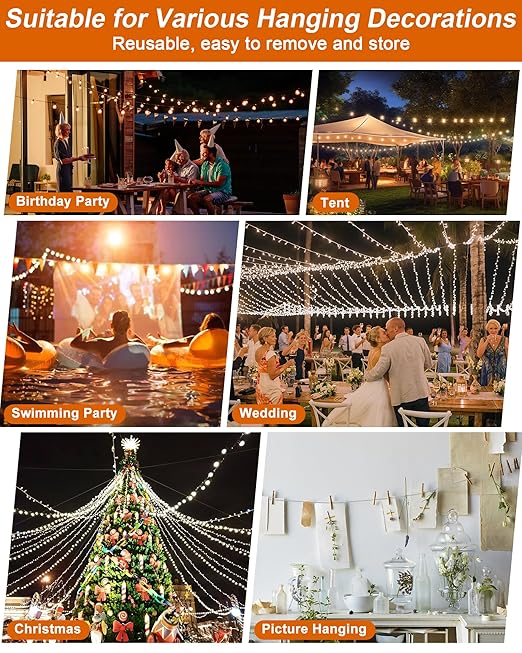 • [Durable and Rust-Resistant] Crafted from superior quality 304 stainless steel, our string light hanging kit boasts exceptional corrosion resistance, durability and bearing capacity, perfect for indoor and outdoor multi-purpose use. The 1/8" stainless steel wire cable features a 7X7 strand core structure that ensures strength and safety on all occasions. While the vinyl coating provides a smooth and insulated surface, preventing rust and providing a longer lifespan than nylon coating