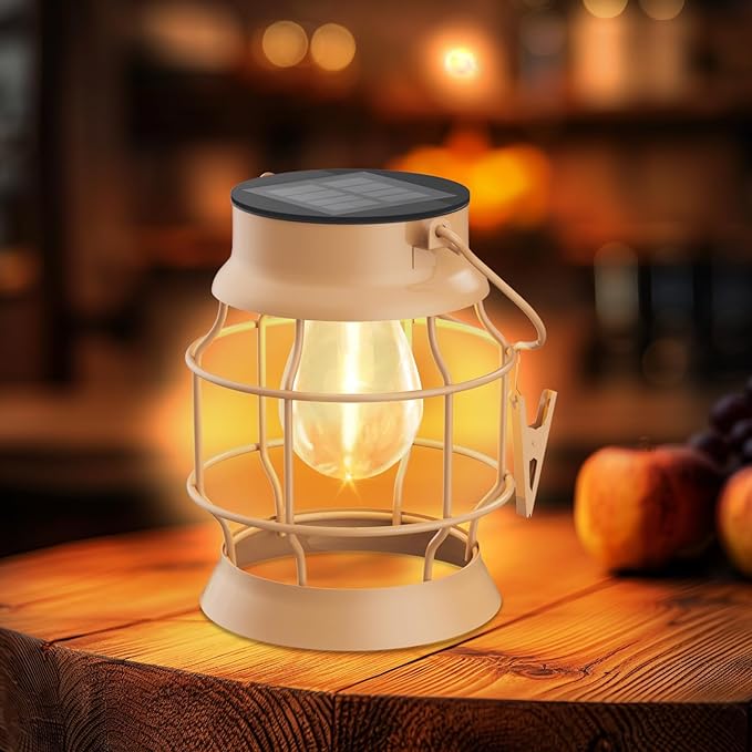 • Vintage Metal Solar Lights : Traditional metal vintage solar lights outdoor waterproof lights exude timeless elegance and charm, distilling the essence of classic design with a hint of vintage allure. Our outdoor hanging solar light is complemented by champagne-colored openwork iron rim strips that give off an alluring glow. Perfect for decorating your garden or patio, it exudes a delightful vintage vibe.