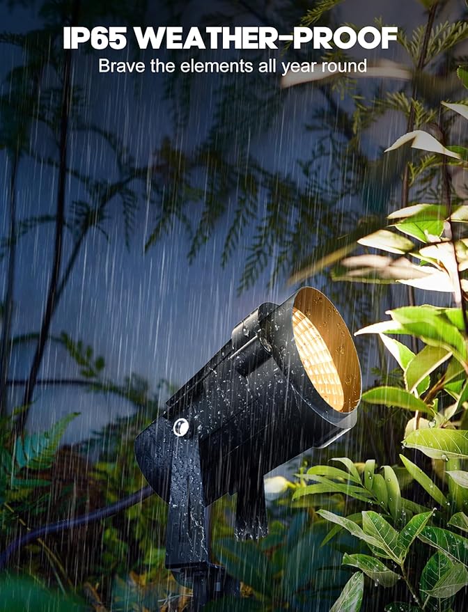• 【2024 Upgraded IP65 Waterproof Landscape Lights】Say goodbye to constant replacements with our new Landscape Lights. Equipped with cutting-edge waterproof technology, these landscape Lights spotlights ensure stable illumination for your outdoor space, even in the harshest weather conditions, providing a consistent ambiance for your yard.