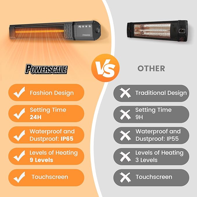 • STYLISH & EASY TO INSTALL: Designed with a modern aesthetic, the wall heaters for indoor is easy to install and perfect for both indoor and outdoor use. Patio heaters for outdoor use provides the ideal heating solution for a gazebo, patio, outdoor bar/restaurant, garage, balcony, and BBQ area