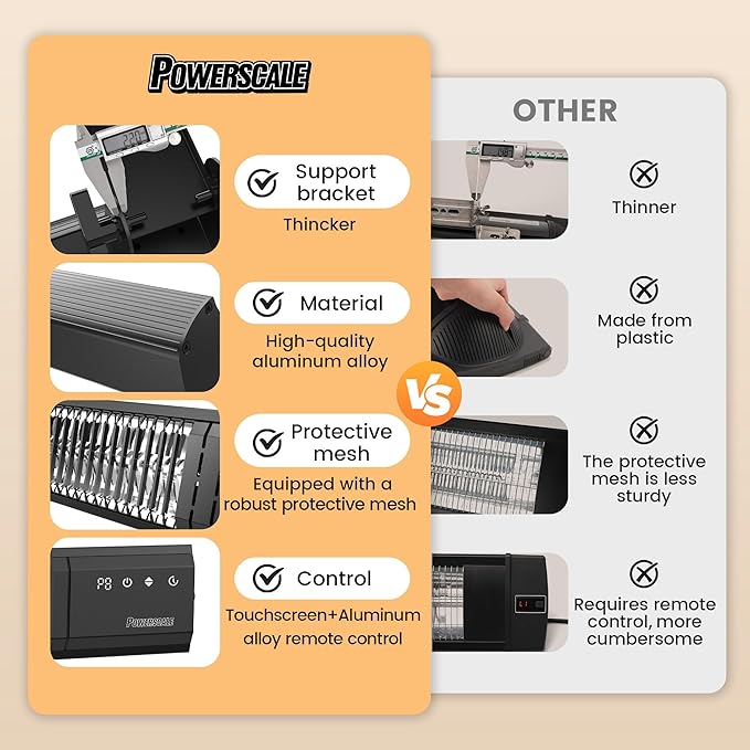 • HIGH HEATING POWER AND SPEED: Experience powerful heating with 1500W capacity. outdoor heater heats up instantly within 2.5 seconds,the infrared outdoor electric Space Heater providing warmth up to 10 feet. Perfect for quick relief from the cold, ensuring your comfort in no time