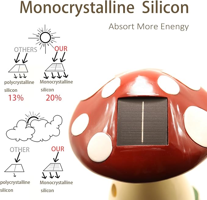 • How to Use: To activate this enchanting solar garden mushroom light, simply flip the convenient switch and position the solar panel towards the sun during the initial setup. Enjoy effortless operation with no further steps needed.