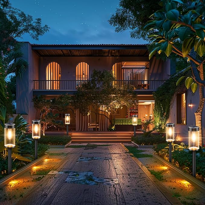 • Warm White & Romantic Lighting: With filament bulbs, the solar lights outdoor emits a softer and warmer light. Fully transparent lampshade with high light transmittance, the solar path lights can create a more charming lighting effect, making a yard bright and cozy