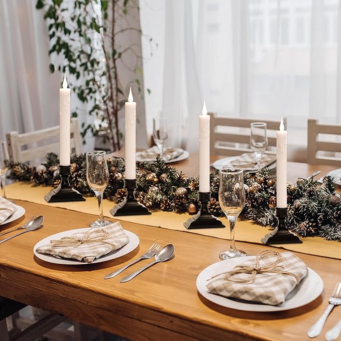 • Battery Operated Candles: Twist bottom to insert 2 AAA batteries for each flamless taper candle(Battery Not Included), safe and clean design ensure no smoking and dripping wax worries, no fire danger. Safety and Clean using in your room.