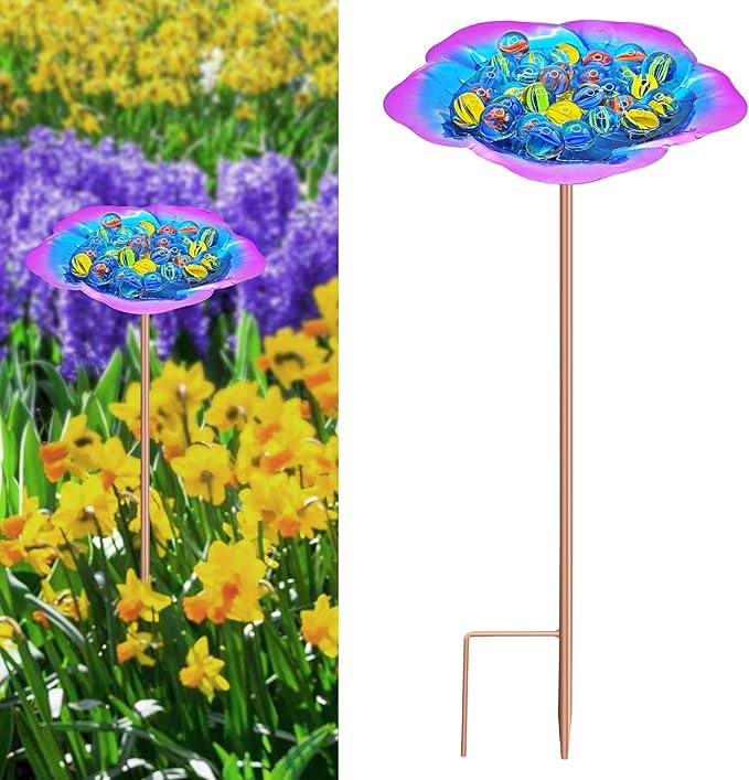 • 😘【More Stable and Not Afraid of Wind and Rain】:Compared with hanging bee feeders, our standing bee feeders for outside is more stable,stable prong base deep into the soil,will not shake even in bad windy weather. Keeps the bees safe to drink.Bee watering station for garden is made of metal and lasts for years.