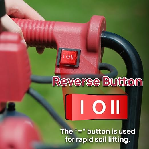 • Reverse Function - The button is in the “II” position, the reverse function is activated to lift the crushed soil and maximize work efficiency quickly.