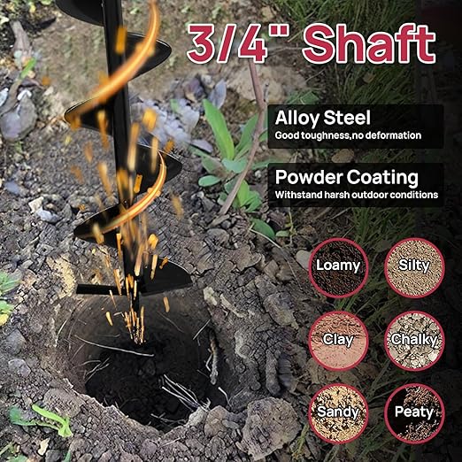 • Rugged - Aluminum motor housing and shock-absorbing nylon body, the auger bits are made of high-strength manganese steel and the standard 3/4'' drive shaft size is suitable for most work scenarios.