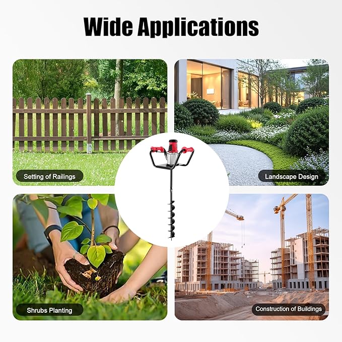 • HIGH ADAPTABILITY: This excavator can be equipped with augers up to 300 mm/11.81 inches in diameter, so you can install different auger sizes to suit your work. The 11.81-inch extension bar included in the package can be used with the auger to allow you to dig deeper, and it's long enough to allow you to save energy without bending over.