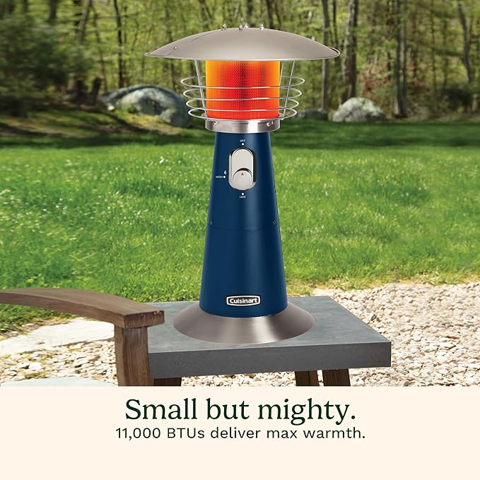 Cuisinart Portable Tabletop Patio Heater, 11,000 BTU Outdoor Propane Heater with Safety Tilt Switch and Adjustable Heat, Burner Screen Guard, 30 sq. Foot Heat Range, Navy