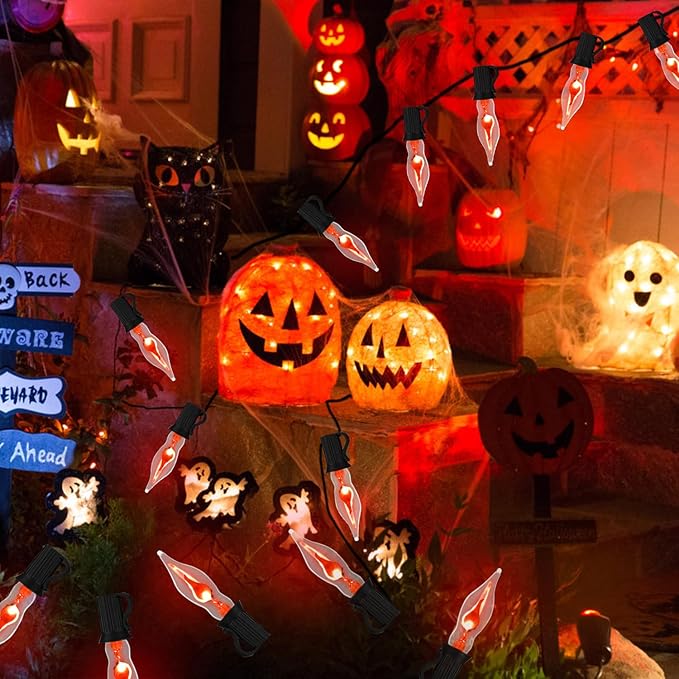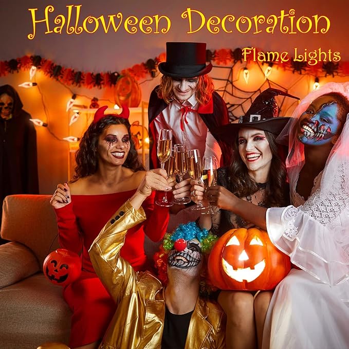 • 🔥【Surprising Christmas Decoration Lights】: Our Flickering Flame Christmas String Lights are perfect for indoor and outdoor decorations, the flickering flame flickers brightly in the dark night, the black vintage wires can be well hidden, suitable for use as Christmas Tree Lights, Fireplace Decorative Lights, Party Lights, Haunted House Decorations, Patio Lights, Garden Lights and so on. Let everyone immerse in the scary and fun atmosphere of Christmas together.