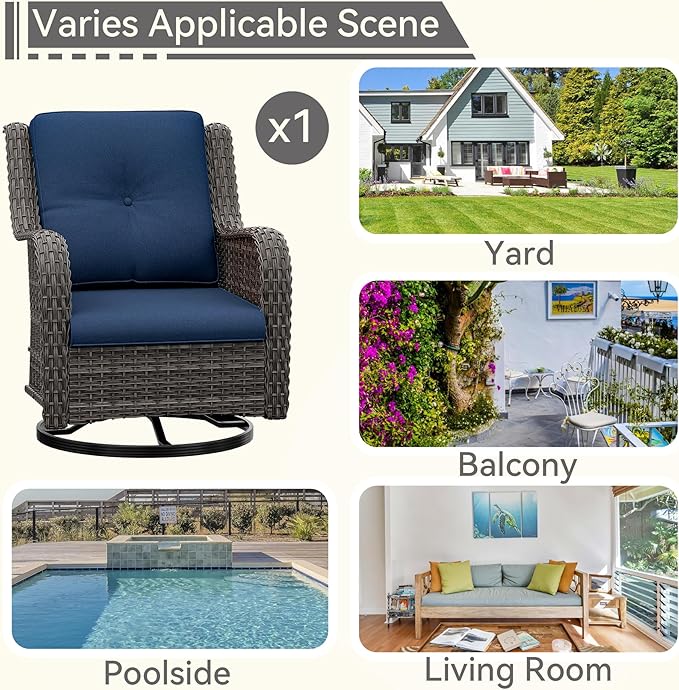 Outdoor Swivel Rocker Patio Chair - Outdoor Wicker Patio Glider Chair with Olefin Fabric Cushions Suitable for Backyard Deck and Porch, Blue