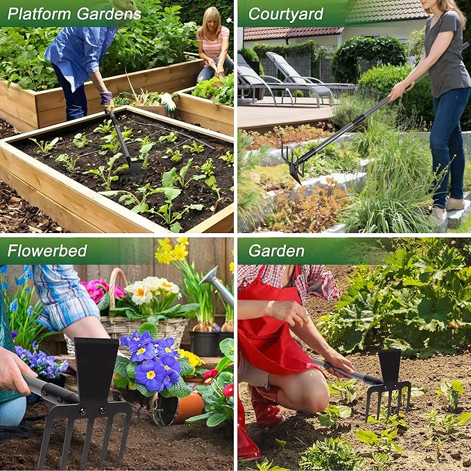 • 2 in 1 Garden Hoe:Walensee 2-in-1 Garden Hoe Cultivator with 5-Tine Rake is a versatile gardening essential that revolutionizes your outdoor chores. Its widened hoe and five tines design vastly extends your working reach, streamlining tasks and significantly reducing the time spent on gardening, landscaping, weeding, digging, seeding, soil loosening, vegetable cultivation and weed eradication. Experience the ultimate in gardening convenience and efficiency with this must-have tool.