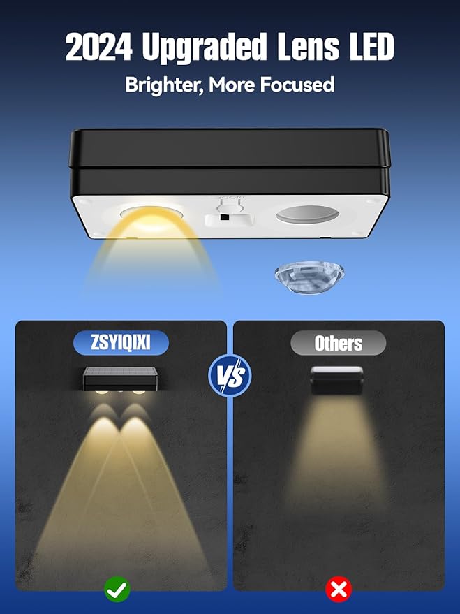 • 【New Upgraded LED with Lens】Our fence lights solar powered feature an innovative optical lens design that effectively concentrates diffused light into a V-shaped beam, creating a more focused light output and a wider illumination area. Measuring 3.9 x 1.9 x 1.3 inches, these compact solar fence lights outdoor maximize functionality without overwhelming your space. Elevate your outdoor garden with elegant lighting that enhances both aesthetics and safety