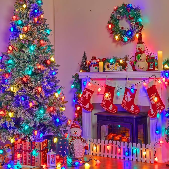 • 【 Connectable Up to 33 Sets 】- You can connect up to 33 sets of these C9 LED Christmas string lights end to end, providing convenience for decorating large areas or substantial outdoor objects such as rooflines or oversized trees