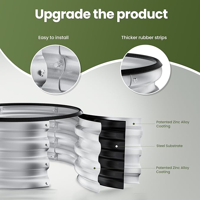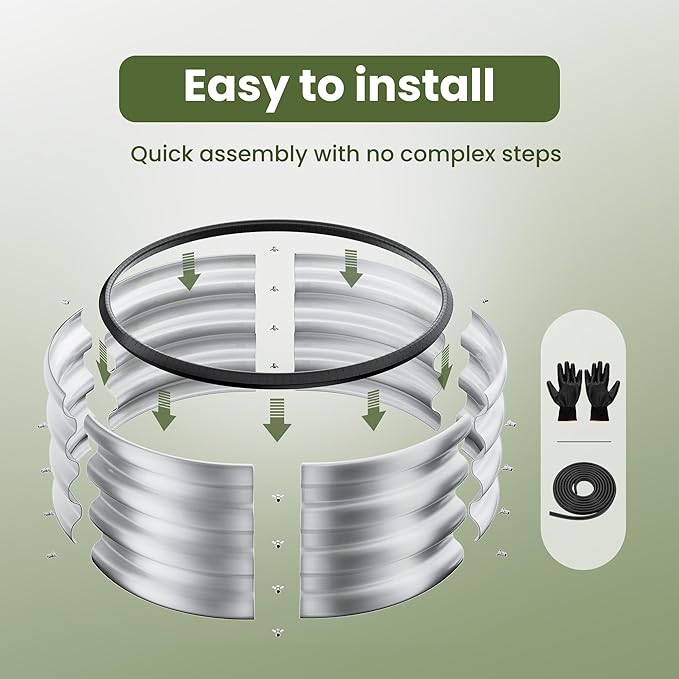 ZXZYHFTY Round Galvanized Raised Garden Bed kit,Silver Outdoor Garden Raised Planter Box, Round Large Metal Raised Garden Beds for Vegetable 2 * 2 * 1ft 3 Pcs