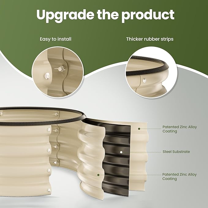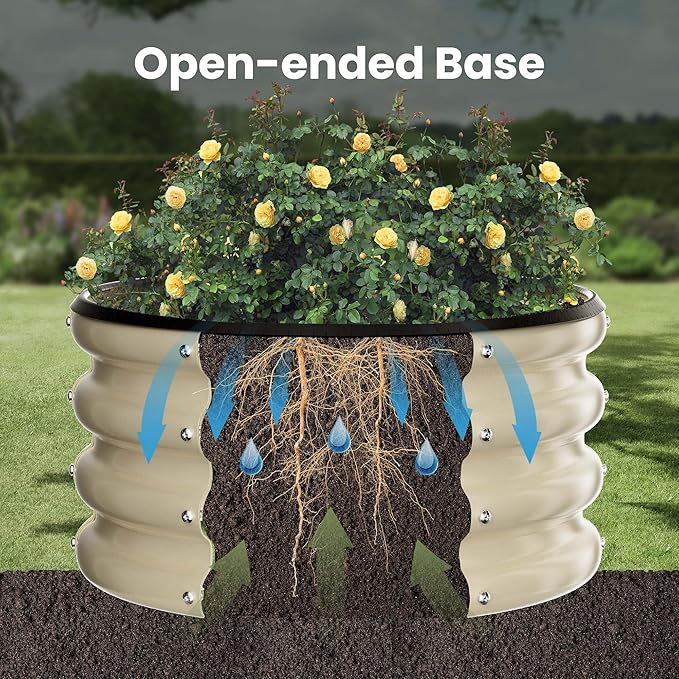 • 【Enhance Garden Aesthetics】 The stable and beautiful design of the round galvanized raised garden bed will enhance the appearance of any garden. For any questions or concerns, please don't hesitate to contact us through Amazon.