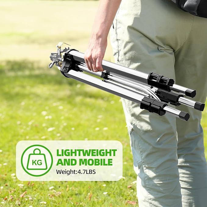 • Heavy Duty Metal Construction: The tripod is made of strong and durable zinc alloy, and the impact sprinkler head is made of brass so that it can withstand harsh environments without breaking, rusting or corroding. The triangular structure gives it an excellent anti-tipping feature, making it stable even on slopes