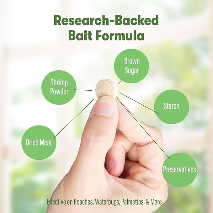 • Insect Trap With Food Bait Tablets: Powerfully lure roaches, spiders, other bugs and pests with an irresistible bait tablet made from shrimp powder, dried meat, starch, and brown sugar