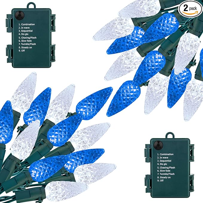 • 【 8 Lighting Modes 】- There are 8 different modes for the C6 Christmas string lights, including waves, sequential, slow glow, flashing, slow fade, twinkle, and combination, as well as standard on and off. It can be controlled by pressing the button on the battery box. Ideal for your everyday decor as well as holiday decoration.