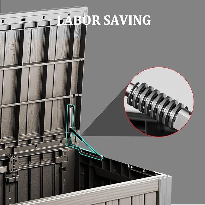 • Material: The patio outdoor storage box is made of the latest high-quality resin material, which makes this patio deck storage box waterproof, UV-resistant, anti-fading, and anti-bending protection, suitable for long-term outdoor use.