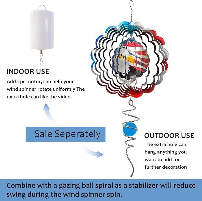 • 【Patriotic Eagle Gift Idea】The American Flag Eagle Wind Spinner is a patriotic gift for your friends & family who are in love with USA. Show off your patriotism with this wind spinner featuring an American Bald Eagle. Perfect for Birthday, President's Day, Election Day, Flag Day, Veterans Day, Memorial Day, 4th of July, patriotic.