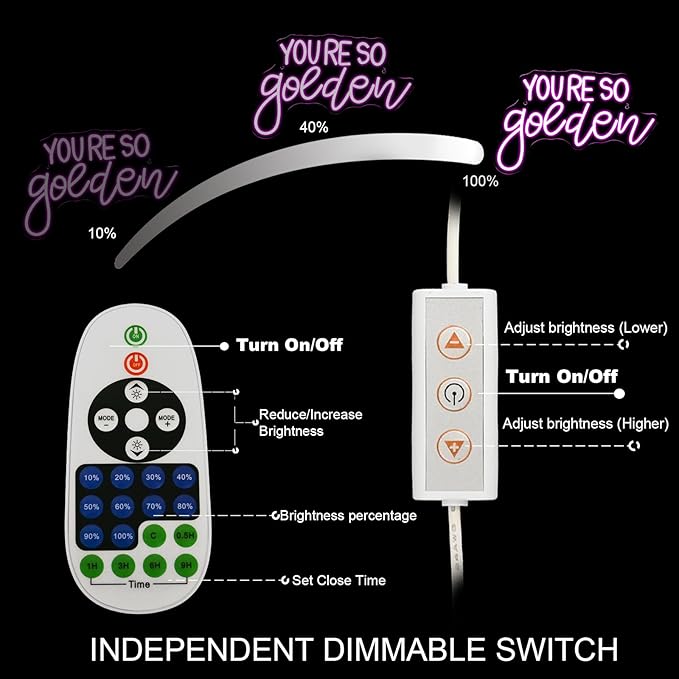 • Neon sign design: "YOU RE SO GOEDEN" neon light, adding a touch of glow to any room! Whether you want to create a cozy atmosphere in your bedroom or living room, show your friends and family that your home is their happy place, or give a special gift to your loved one