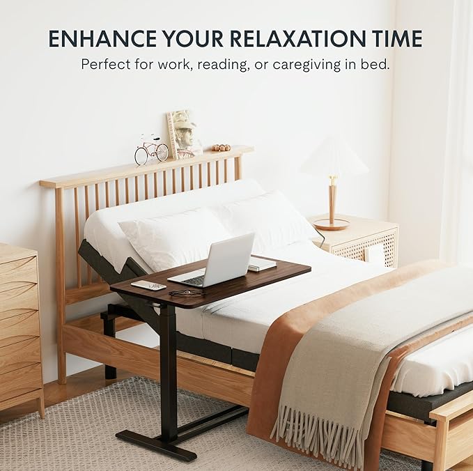 • One-Touch Height Adjustment with Gas Spring Lift (26"-41.7"):Effortlessly customize your C-Shaped Table from bedside to standing desk heights using the pneumatic lift system. The gas spring mechanism enables smooth one-handed operation – perfect as an overbed table for patients, an adjustable laptop desk, or a sofa-side snack table – all without bending or straining.