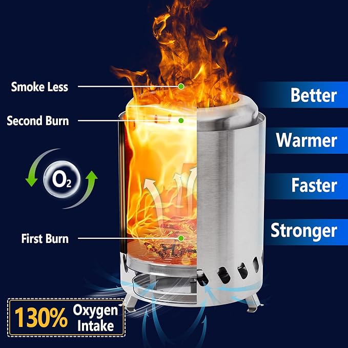 • Advanced Smokeless Technology: Innovative double-wall design with strategic vent holes generates enhanced airflow, dramatically reducing smoke while maintaining optimal burning efficiency
