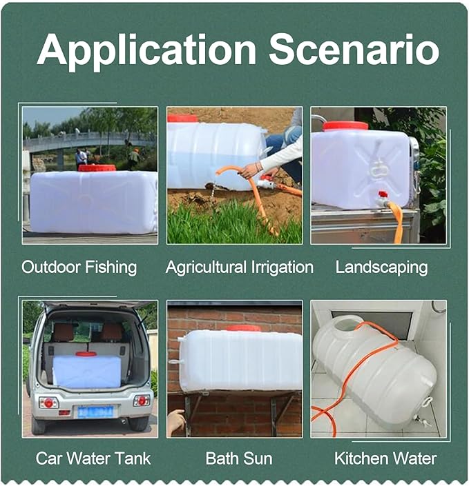 • Applicable Scene: The water storage bucket is suitable for outdoor drinking water, camping, hiking, picnic barbecue, family, factory, farmland, industry, self driving cars, camping out, is a good helper for your outdoor life, can meet the needs of large-capacity storage of water or other liquids.