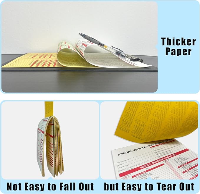 • Comprehensive & Convenient: The annual vehicle inspection reports include all the necessary categories for safety and compliance. Structured for clarity and ease of completion . Measuring 8.5" x 11.75" ,they are come in a snap-out, 3-ply carbonless format (original, duplicate, vehicle copy), making them easy to use and manage.