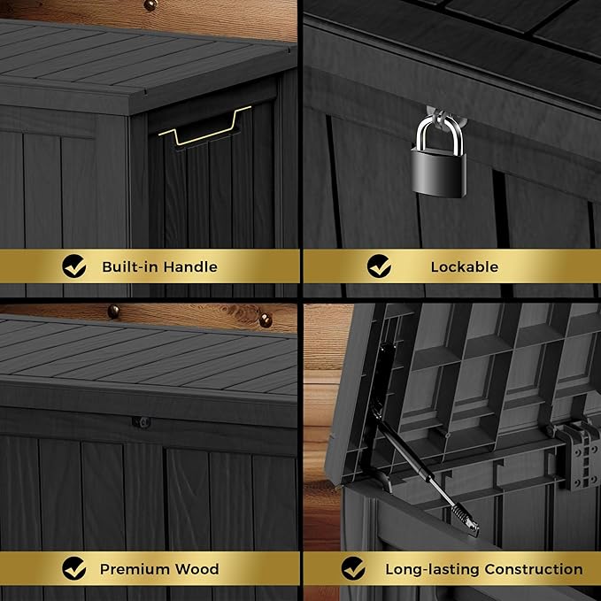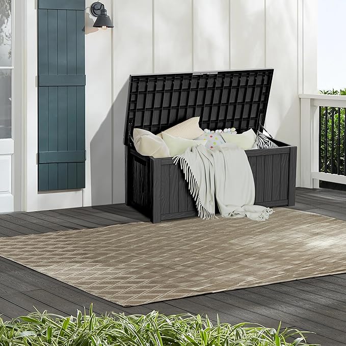 • Wide Range of Use: With a capacity of 150 gallons, this storage box can also be used as a patio seat, storage bench or footstool, whether it's family party supplies, camping equipment, gardening tools.