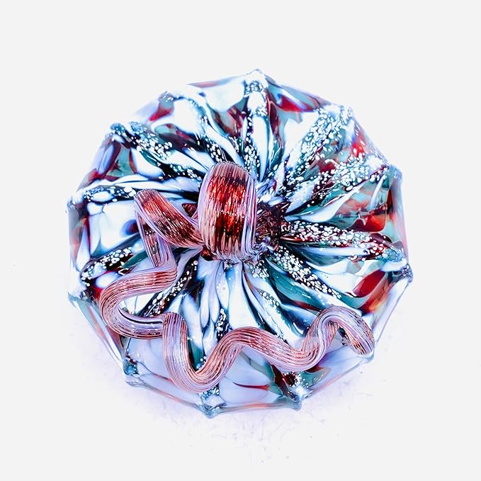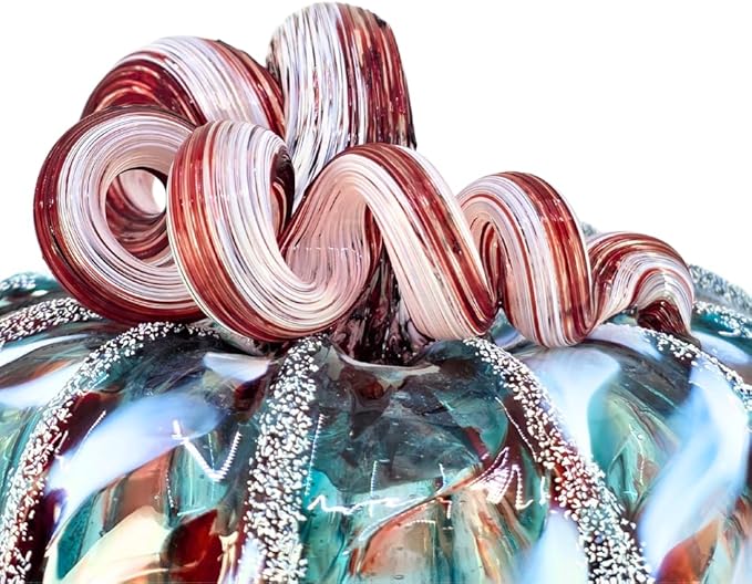 Luke Adams Glass Handmade Glass Pumpkins Handmade Table Top Home Decor (Squat, Winter Frost)