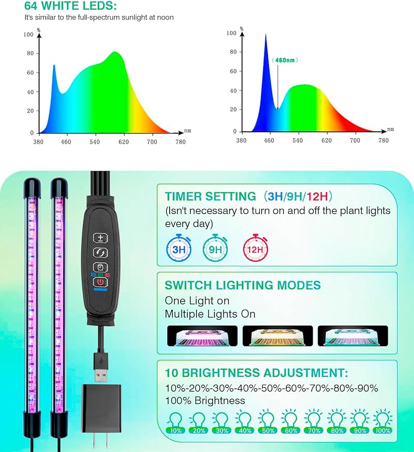 • Embedded Led Lamps:Each light is equipped with 4 blue and 16 white lamp beads, meticulously engineered to replicate natural sunlight.